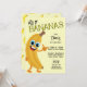 Bring fun and personality to your child’s celebration with this adorable “Let’s Go Bananas” birthday party invitation! This playful design features a cheerful cartoon banana character with big expressive eyes and a friendly smile, perfect for a lighthearted kids’ party theme. The typography mixes a bold, hand-drawn script with eye-catching outlined block letters, creating a lively and upbeat look that grabs attention.