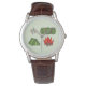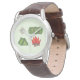 Watch features an original marker illustration of various camping-themed items including a compass, sleeping bag, tent, and campfire.