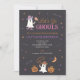 Celebrate your October birthday with this cute, on-trend Western Halloween themed party invitation featuring cowboy and cowgirl ghosts and pumpkins! Your Haunted Hoedown will be the talk of the town! Designed and illustrated by Amber Jones of Lily Girl Paper.