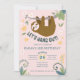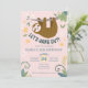 Let's Hang Out Jungle Sloth Pink Birthday Invitation