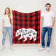 This fun winter fleece blanket features red buffalo check plaid, a white bear, snowflakes, and stylish typography reading, "Let's Hibernate."