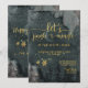 A classy and elegant holiday invite in classic black and shimmering gold with a sparkle of delicate snowflakes, inviting your guests in a handwritten calligraphy font. The back of this invite doubles as a holiday card.