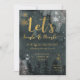 A classy and elegant holiday invite set in beautiful deep green watercolor night snowy sky over a scene of evergreens with a lively gold calligraphy font inviting your guests to an evening of jingle and mingle.