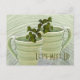 Save postage and envelope/paper when you send a postcard. The cover design includes digitally altered photographs of two green spiral shaped tea cups with sprigs of mint sticking out of the top. Personalise the template text, remove text or click customise to select a font style, size, and colour you prefer.
