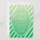 A pretty invitation that is perfect for a winter party. This invitation has a dark green to light green gradient background with white diagonal stripes. Centred is a large white frame for your text. At the top in white it says Let's Mingle and Jingle with a pretty ornament to the left. The rest of your invitation wording goes below in white. This invitation would be perfect for your business holiday party.
