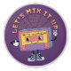 Retro style grunge illustration with "Let's mix it up" text design and cassette decoration with smiling face and hand and legs