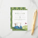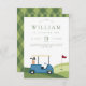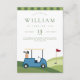 First birthday golf theme "Let's Par Tee" with a golf course and gold car scenery and argyle pattern reverse.