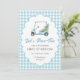This customisable birthday invitation features a watercolor portrait of a golf cart with the caption "Let's Par - Tee".
