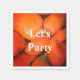 Are you planning a picnic or party with a southwest flair. The photo featured on these paper napkins captures bright orange chilli peppers to add an extra level of spice to your party. A mosaic touch and brightening was given to this photograph giving it a vivid tiled pattern. "Let's Party" appears in white font in the centre and may easily be customised if you desire.