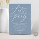 Mark the beginning of your forever with elegance using our modern romantic contemporary dusty blue theme happily ever after wedding elopement celebration invitation card, "Let's Party". Perfect for couples extending their joyous occasion, this invitation exudes sophistication with a hint of playfulness, setting the stage for a memorable event. Adorned with a timeless modern script design theme, it adds a touch of refined charm to your festivities. Crafted by TeeshaDerrick, this invitation promises to beautifully capture your love story.