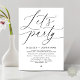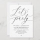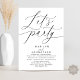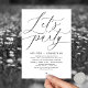 Mark the beginning of your forever with elegance using our modern romantic contemporary black and white themed happily ever after wedding elopement celebration invitation card, "Let's Party". Perfect for couples extending their joyous occasion, this invitation exudes sophistication with a hint of playfulness, setting the stage for a memorable event. Adorned with a timeless modern script design theme, it adds a touch of refined charm to your festivities. Crafted by TeeshaDerrick, this invitation promises to beautifully capture your love story.