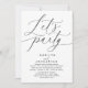 Mark the beginning of your forever with elegance using our modern romantic contemporary black and white themed happily ever after wedding elopement celebration invitation card, "Let's Party". Perfect for couples extending their joyous occasion, this invitation exudes sophistication with a hint of playfulness, setting the stage for a memorable event. Adorned with a timeless modern script design theme, it adds a touch of refined charm to your festivities. Crafted by TeeshaDerrick, this invitation promises to beautifully capture your love story.