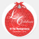 Save the date Christmas party sticker featuring a red lace covered Christmas ornament with customisable white party lettering. Let's celebrate! The elegant red lace motif of interlacing stars and flowers is reminiscent of the ancient craft of lace-making. You may also enjoy many of the other Christmas party products available in my store with this lovely, vintage lace christmas ornament designs. Anura Design Studio All Rights Reserved