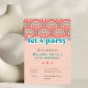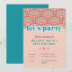 Add a retro, flower child vibe to ANY AGE birthday party with these cute invitations. Easy to customise. Chunky vintage lettering with a bright blue, "let's party" lettering, flower design and arches. Draws on mid-century minimalist and hippy themes. Modern colours of pastel dusty pink, hot pink and shades of blue.