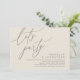 Mark the beginning of your forever with elegance using our romantic contemporary cream grey theme wedding elopement happily ever after lunch, brunch, reception dinner party celebration invitation card, "Let's Party". Perfect for couples extending their joyous occasion, this invitation exudes sophistication with a hint of playfulness, setting the stage for a memorable event. Adorned with a timeless modern script design theme, it adds a touch of refined charm to your festivities. Crafted by TeeshaDerrick, this invitation promises to beautifully capture your love story.