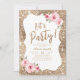 Let's party sparkle gold glitter and pink floral invitation