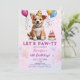 Lets Pawty 6th Birthday Dog Puppy Girl Party Invitation