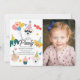 This cute "let's pawty" kid's birthday photo invitation features dogs and a cat with party hats and sunglasses or glasses. The reverse side features a cream background with confetti patterns. Personalise it for your needs. You can find matching products at my store.