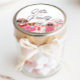 The label is the perfect size , great quality as a label for a glass jar and the product was just as it looked on line and arrived within a very quick timeframe. The design was just perfect tasteful artistic and I have received so many comments from people on the label . A perfect size, colour and font very professional.