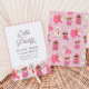 Invite your little girls' friends and loved ones to her puppy pawty! This design features bold pink and red colours, and some adorable puppies.
