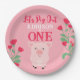 Let's Pig Out Farm Animal Floral Girls Birthday Paper Plate