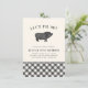 Hosting a BBQ or pig roast birthday party? Invite guests to "pig out" with you with these cool party invitations featuring a vintage style hog illustration and "let's pig out" arched across the top in black lettering. Add your event details beneath using the template fields provided. A plaid bottom border adds a rustic finishing touch.