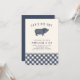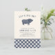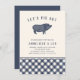 Hosting a BBQ or pig roast engagement party? Invite guests to "pig out" with you with these cool party invitations featuring a vintage style hog illustration and "let's pig out" arched across the top in navy blue lettering. Add your engagement party bbq details beneath using the template fields provided. A plaid bottom border adds a rustic finishing touch.