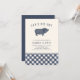 Hosting a BBQ or pig roast wedding rehearsal dinner? Invite guests to "pig out" with you with these cool party invitations featuring a vintage style hog illustration and "let's pig out" arched across the top in navy blue lettering. Add your rehearsal dinner bbq details beneath using the template fields provided. A plaid bottom border adds a rustic finishing touch.