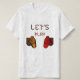 A dynamic design featuring "LET'S PLAY" in stylised, layered outlined text, positioned above two subtly shaded game controllers, one in orange and one in red.