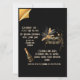Glamourous party invitation to celebrate the end and beginning of the year, on a black background, with gold and black details, easily customisable