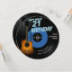 A music themed, guitar themed, fun 21st birthday party invitation template for guys in the shape of a vinyl record, that features an acoustic guitar, a fragment of a partition and the title "Let's Rock 21" in blue. A perfect twenty one birthday party invite for a guy who loves music, is a musician, plays the guitar or is a music fan.