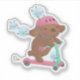 A cute illustration of a dog riding a scooter with fluffy monsters