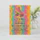 This vibrant retro roller skating birthday party invitation with the quote "let's roll" features a bold pink skate with rainbow stripes set against a bright, wavy 70s-inspired background. Customisable text allows you to personalise the name, age, date, time, location, and RSVP. With groovy fonts and eye-catching colours, this fun and nostalgic layout is ideal for any girl’s birthday celebration at the skating rink.