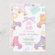 Lets Roll Roller Skate Skating Bow Girl Birthday Invitation