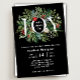 Let's Share the Joy Holiday Baby Shower Invitations featuring the word, JOY against rich Christmas florals and a black background