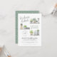 This modern invite features "let's shower the bride!" in script lettering, the bride's name in hand-written capitals, your date and time in a round stamp design, and the event details below. The illustrations are hand-painted in watercolor and show a variety of houseplants on three different shelves. There are succulents, cactus plants, hanging plants, and more! Cards reverse to a white boho leaf pattern against a green background. Perfect for any nature-loving "plant mum" bride-to-be! Click on "Personalise this template" and change the text in the boxes to make your own! View the collection link on this page or visit our store for more designs!