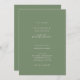 This design features a minimalist and elegant couples shower invitation. It has a sage green background with simple white typography, combining both classic serif fonts and modern calligraphy for emphasis. The layout is neatly centred, with a soft and sophisticated look that highlights the couple's names and event details in a refined, stylish way. The overall design feels timeless, graceful, and easy to read, making it perfect for a classy celebration.