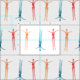 Splashy design of synchronised swimmers in beach colours.