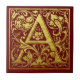 Charming decorative letter A initial monogram, calligraphy style typography, first letter in red and faux gold (shades of yellow with highlights and shadows to simulate metallic gold leaf gilding texture).