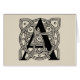 This capital Letter A is winding around a vintage Celtic Knot. This vintage " A " is a wonderful monogram for that " A " someone in your life! This initial A is done in a very ornate lettering style, typical in the Old English and old world Celtic knots that you see in antique books and other designs. The black and white monogram A is perfect for you if your name starts with the letter A -- so, if you need to seal letters with your name, or personalise your gift in a beautiful way, our A design is a wonderful gift.