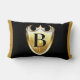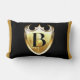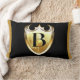 This lumbar pillow displays the capital Letter B inside of a golden coloured elegant decal with a unique font over the front and back panel with soft wrinkle-free knit fabric has a hidden zipper enclosure including synthetic-filled insert. All pillow are made from 100% polyester with high quality sublimation double-sided printing.