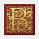 Charming decorative letter B initial monogram, calligraphy style typography, first letter in red and faux gold (shades of yellow with highlights and shadows to simulate metallic gold leaf gilding texture).