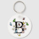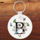 Letter B Floral Butterfly Monogram Initial Key Ring