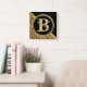 Letter B Monogram Leopard Print Gold and Black Square Wall Clock