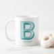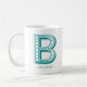 Customisable white coffee mug featuring the letter B in unique teal coloured typography. Add your name using the personalisation feature.