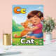Cute and colorful alphabet poster featuring the letter C with a friendly cartoon cat and a cheerful girl illustration.