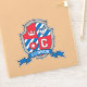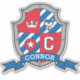 Knights style shield crest monogram letter C graphic art stickers in shades of red, blue and grey. Personalise with your own name or family name beginning C, currently reads Connor. Ideal for personalising your belongings if your surname or first name begins with the letter C. Unique wolf dog head, crown, and shield crest drawing and graphic art and design by Sarah Trett for www.mylittleeden.com