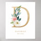 Letter D Blush Floral Monogram Gold Foil Nursery Poster