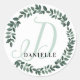 Letter D Monogram Custom Name Minimalist Botanical Classic Round Sticker