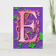 The letter E on an elegantly ornamental card. Pink initial on a violet background, with green foliage detail. Available on greeting cards, notecards or postcards. Envelopes included with greeting or notecards (no envelopes with postcards), blank inside. Buy in bulk and save.